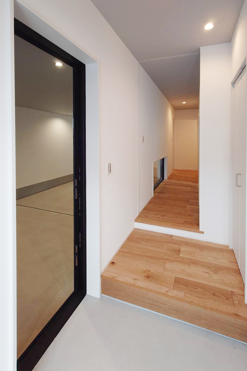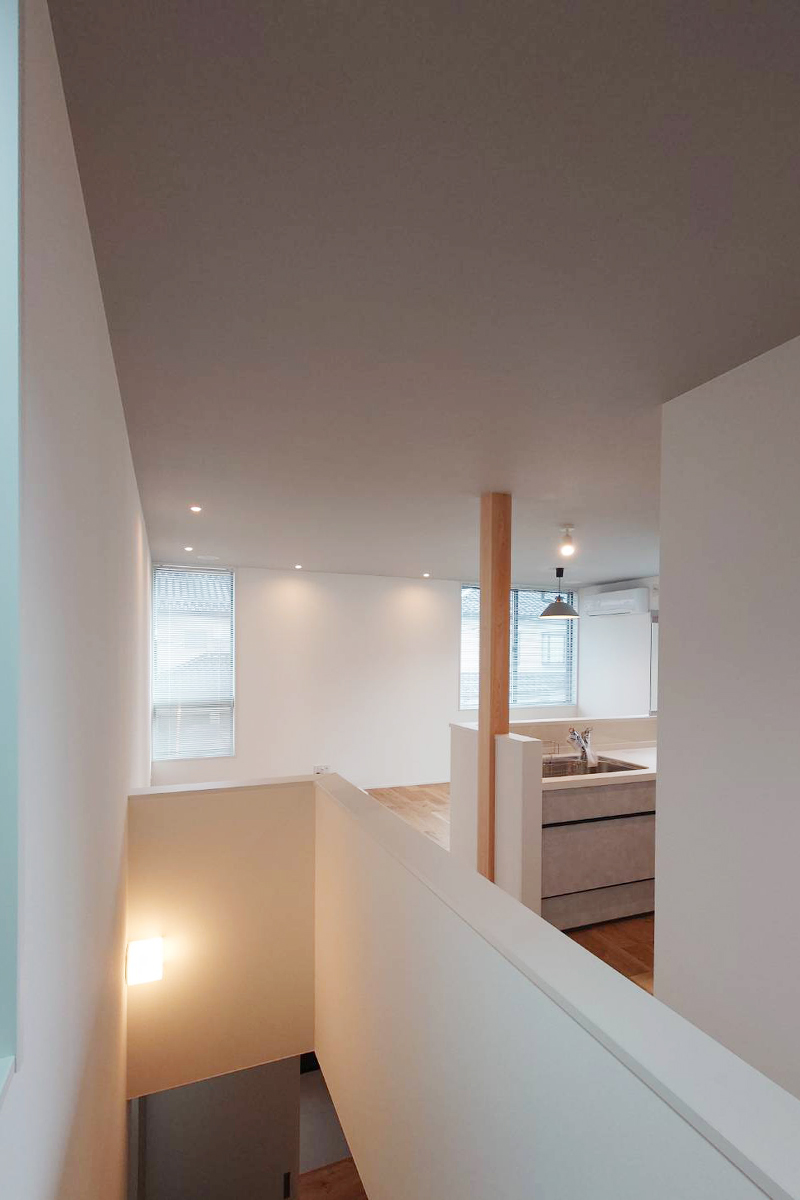 狭小地で有りながら、車を二台所持出来てオフィス兼自宅という理想を形にした空間です。